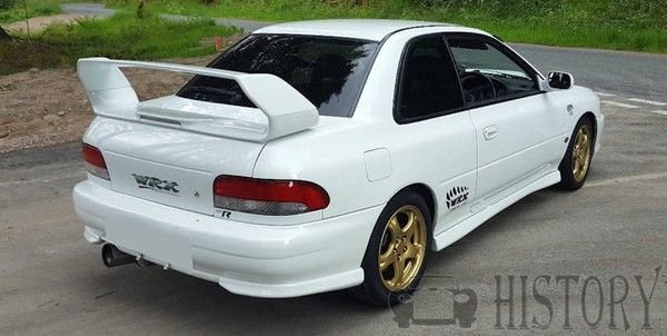 With GC8D came the start of the coupé version of the WRX STI. It is called the WRX Type R STI. The coupé was chosen by Prodrive for use in the WRC because it was lighter and stiffer than the sedan, although it carried the same exterior dimensions. It was essentially a two-door version of the WRX Type RA STI meaning it had DCCD, minimal sound insulation, close-gear ratios and hardened gearbox. This car also has a water-spray nozzle to dampen the top of the intercooler. The water will then evaporate, taking heat away from the intercooler and cooling the intake charge. This car was produced on an order-only basis. Also, there was a WRX STI type RA (sedan) available, with a roof vent instead of map lights, and wind up windows, although electrics are an option from factory.